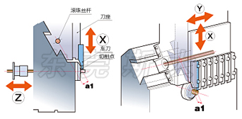 一、斯大走心機SR-32JMtypeN采用傾斜型燕尾槽導軌構造,這樣切削點近接處X、Y軸構成放射狀,機械剛性提高,還由于滾珠絲桿中心所通過的Y軸導軌是平行的直線與切削點構成近接(右圖a1),減少切削抵抗力矩的負重,使X軸、Z軸方向的刀架臺剛性提高,由于這個斯大自豪的具有專利的刀架臺構造,實行了刀具壽命延長和長時間連續加工時的穩定精度。 |