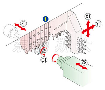 四、斯大走心機SB-20RtypeC在標準規格橫向鉆孔單元4軸的基礎上,可配備橫向鉆孔單元5軸型、可交換式橫向鉆孔單元5軸型/5軸高速型4種刀架臺,而可交換式橫向鉆孔單元5軸中的右側3軸,采用模塊化設計配備豐富的刀具單元,可根據工件需要自由安裝多種可交換式工具,展開多樣的復合加工。