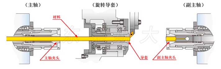 一、安裝位置:走心機主軸夾頭安裝在主軸前端夾持原材料,走心機導套安裝在活動導套內部扶持原材料,走心機副軸夾頭安裝在副主軸前端,夾持產品而背面加工。